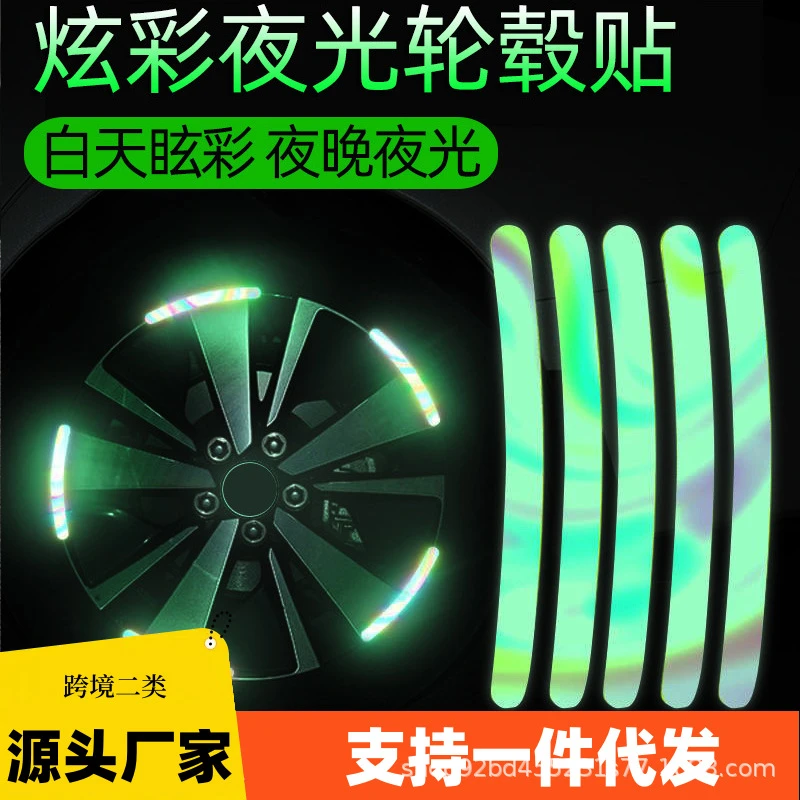 Car Night Glow Multicolor Laser Wheel Hub Stickers, Creative And Personalized Anti-Collision Stickers For Motorcycle And Electric Vehicle Tires