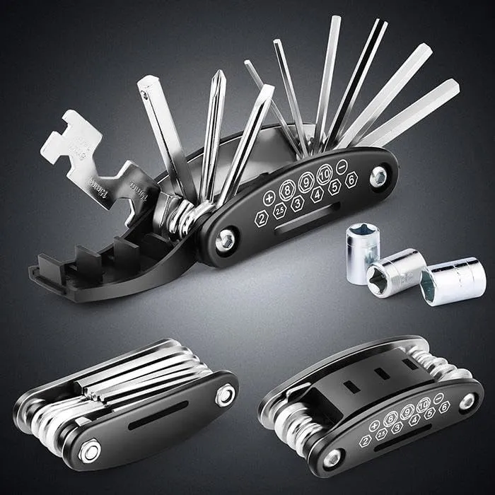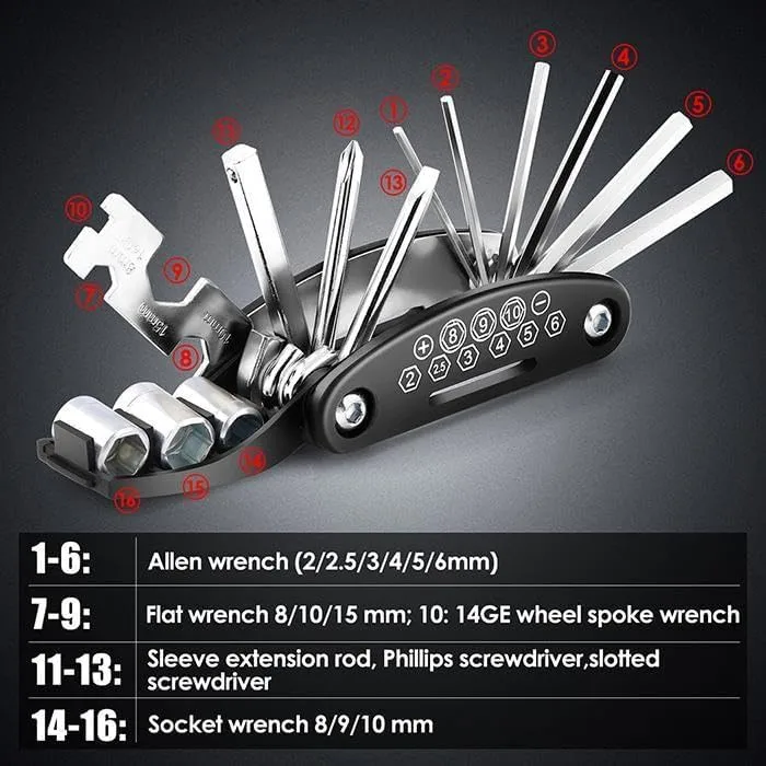 16-in-1 Heavy-Duty Bike Repair Kit With 16-ToolMultifunctional Hex Key Set Puncture Patch &Tire Repair Kit For Mountain Road BikesMotorcycles