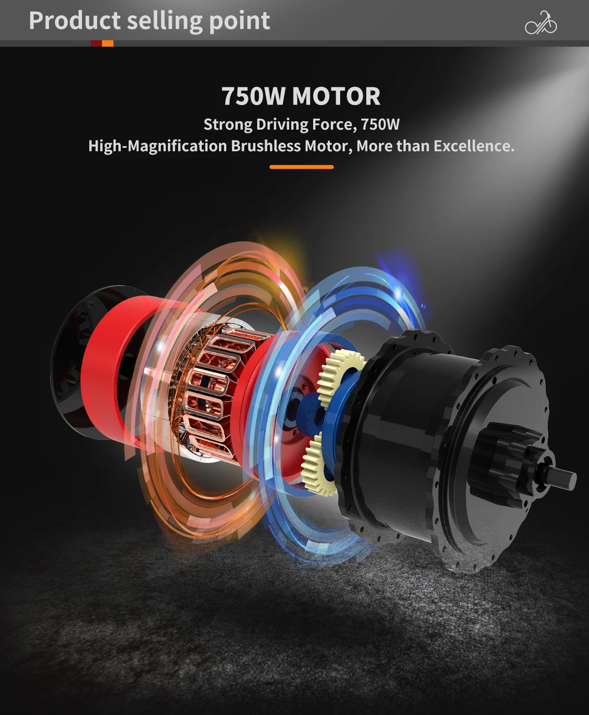 Power: 48V 750W Motor. Powerful, affordable, durable, quiet, clean looking, can make you simply enjoy the ride!