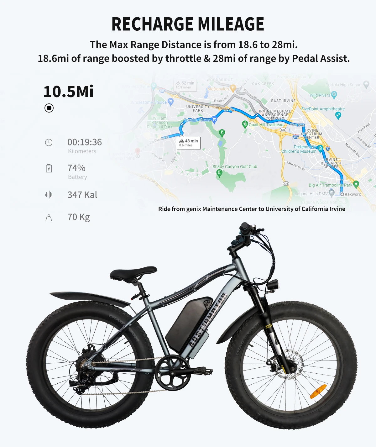 Electric bikes for adults are 95% pre-assembled. Lightweight Aluminum Alloy frame, equipped with high-strength lockable suspension front fork & mechanical disc brakes, effectively reduce frame vibration, driving more smooth and comfortable, it quickly and stably stop when braking at high speed, greatly shortening the braking distance, more safer.