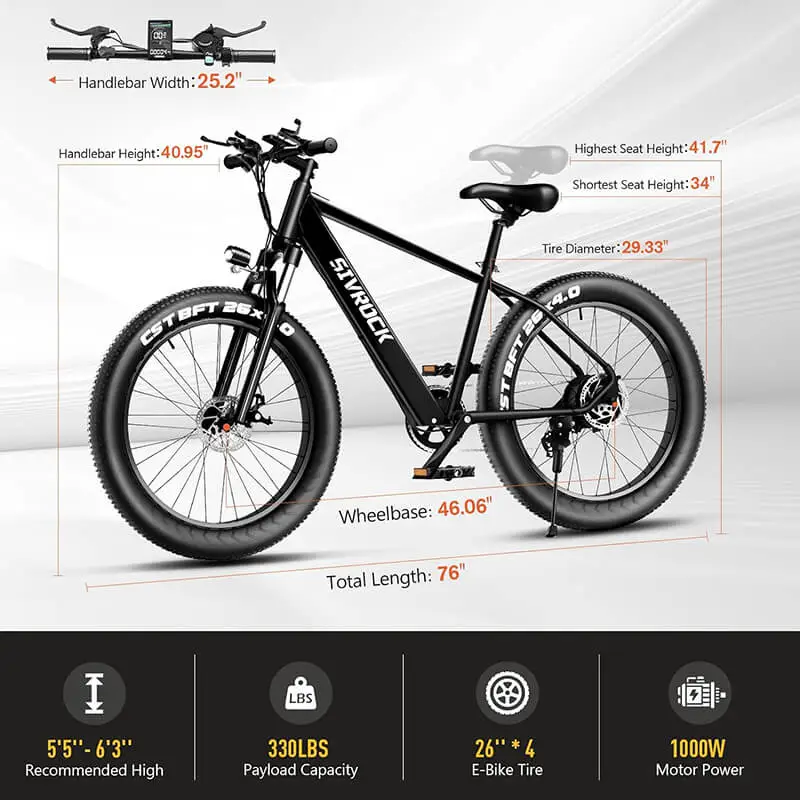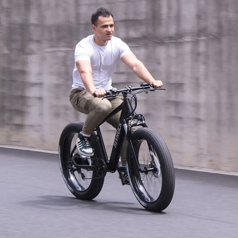 The 7-speed gear on the rear hub of this electric mountain bike meets your multiple-speed needs, combined with the 26" x 4.0 fat tires, giving the electric bike perfect terrain adaptability to conquer complex terrain and roads.